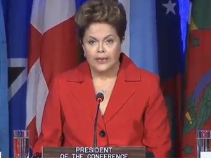 Em um breve discurso, Dilma disse expressar gratidão pelo mandato, às delegações pela expressiva liderança mundial que “indica compromisso dos estados aqui representados com a complexa agenda do desenvolvimento sustentável”.