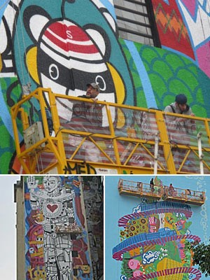 Os personagens fazem parte de três murais pensados pelo artista plástico Rui Amaral, 51 anos. As obras estão sendo pintadas separadamente por ele e mais outros dois artistas plásticos na Avenida Paulista, Rua Amauri e Rua da Consolação.