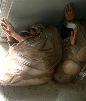 Dois presos da Delegacia de Furtos e Roubos de Veículos de Curitiba se esconderam dentro de sacos de lixo, nesta terça-feira (7), para tentar fugir. De acordo com a polícia, o almoço foi servido às 11h e ao meio dia as marmitas de isopor das galerias são recolhidas. Quando um policial passou pelo corredor percebeu que os sacos 'se mexiam'. Ele pensou que fosse um rato, mas ao chegar perto descobriu os detentos. Os presos também usaram cobertores e as marmitas para disfarçar.